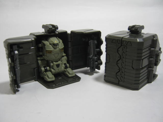 収納ケースが付属する他、変形してウォーカーになったり、3ミリジョイントを生かして同じタカラのミクロマンやトランスフォーマーの武器を付けてみたりと結構遊べる印象。