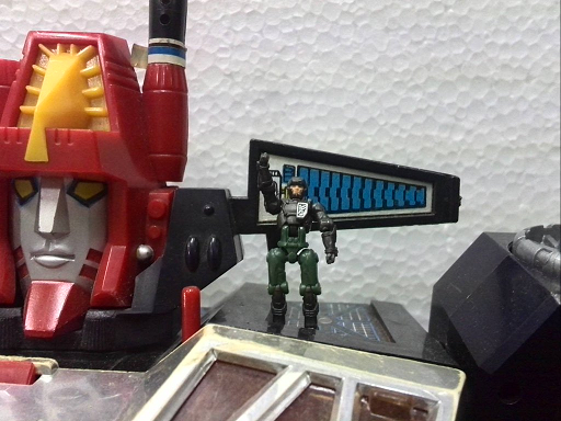 サイバーバースのモービルバトルバンカーと組み合わせてみる。トランスフォーマーの小型基地系との相性が良さそうです。ビークルの運転席に丁度、空間があったので運転手代わりに隊員も乗せられます。